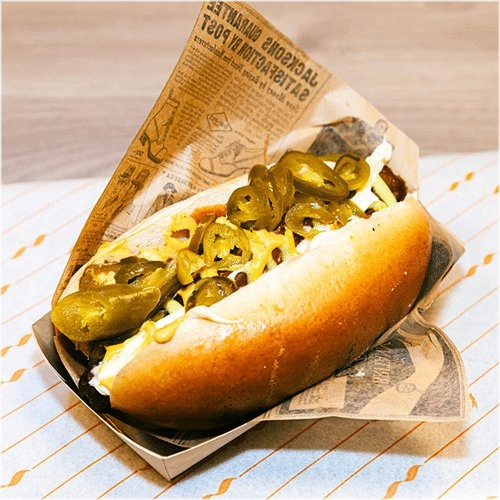Beef Patty,Cheddar,Jalapenos,Lettuce,Tomato,Pickles,Hot Sauce0